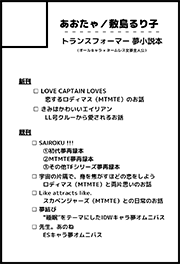 | 09 | Bullet Shine | 10 | メルヘンマシュマロ地獄 | 11 | ゆうさん屋 | 12 | MOZOKOI |